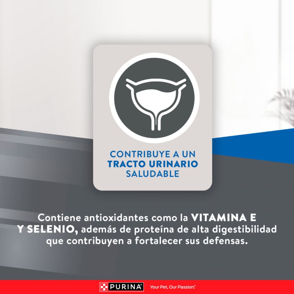 TRACTO URINARIO SALUDABLE Una óptima combinación de ingredientes ayuda a mantener un pH adecuado en la orina, el cual contribuye a la reducción de la formación de cálculos y cristales, colaborando con el mantenimiento de un tracto urinario saludable, fundamental para la salud de tu gato.