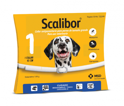 El Collar Scalibor de 65 cm es un antiparasitario externo para perros medianos y grandes que proporciona hasta 12 meses de protección contra flebótomos (vectores de la leishmaniosis), 6 meses contra garrapatas y mosquitos, y 4 meses contra pulgas. Su principio activo, la deltametrina, se libera de forma continua y se distribuye sobre la piel del animal, ofreciendo una protección eficaz y duradera. Es resistente al agua, fácil de colocar y seguro para uso prolongado en perros, aunque no debe utilizarse en gatos.