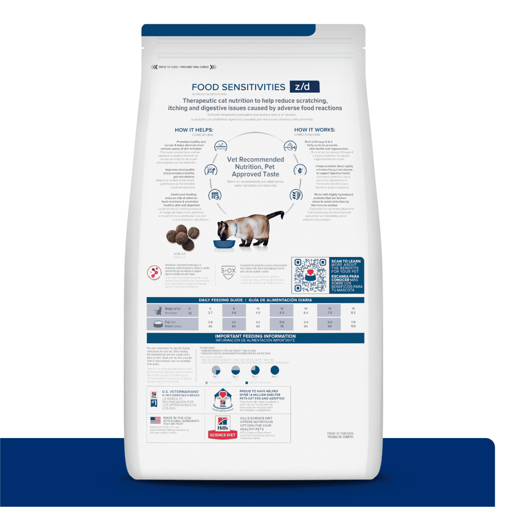 El alimento Hill's Prescription Diet z/d para gato es la opción ideal para perros que necesitan un cuidado especial todos los días. Brinda una nutrición equilibrada y deliciosa, especialmente formulada para reducir las intolerancias a ingredientes presentes en los alimentos. Contiene una fuente de proteínas hidrolizadas que ayuda evitar las reacciones de hipersensibilidad que pueden causar irritaciones en la piel, afecciones en las orejas e incluso molestias gastrointestinales.