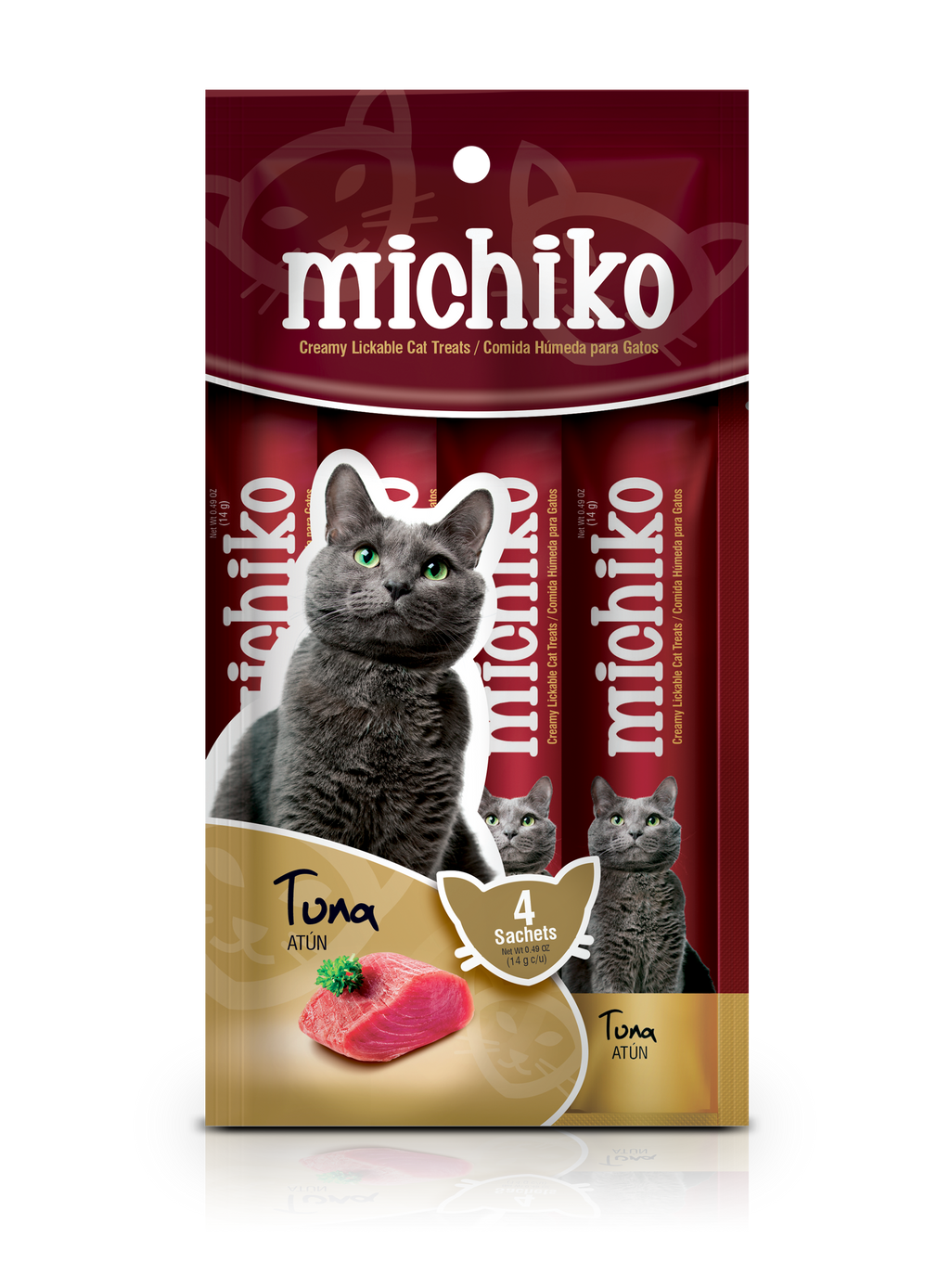Agua, (Salmon / Atún), Espesantes, Extracto de pescado, Vitamina E, Colorantes.
