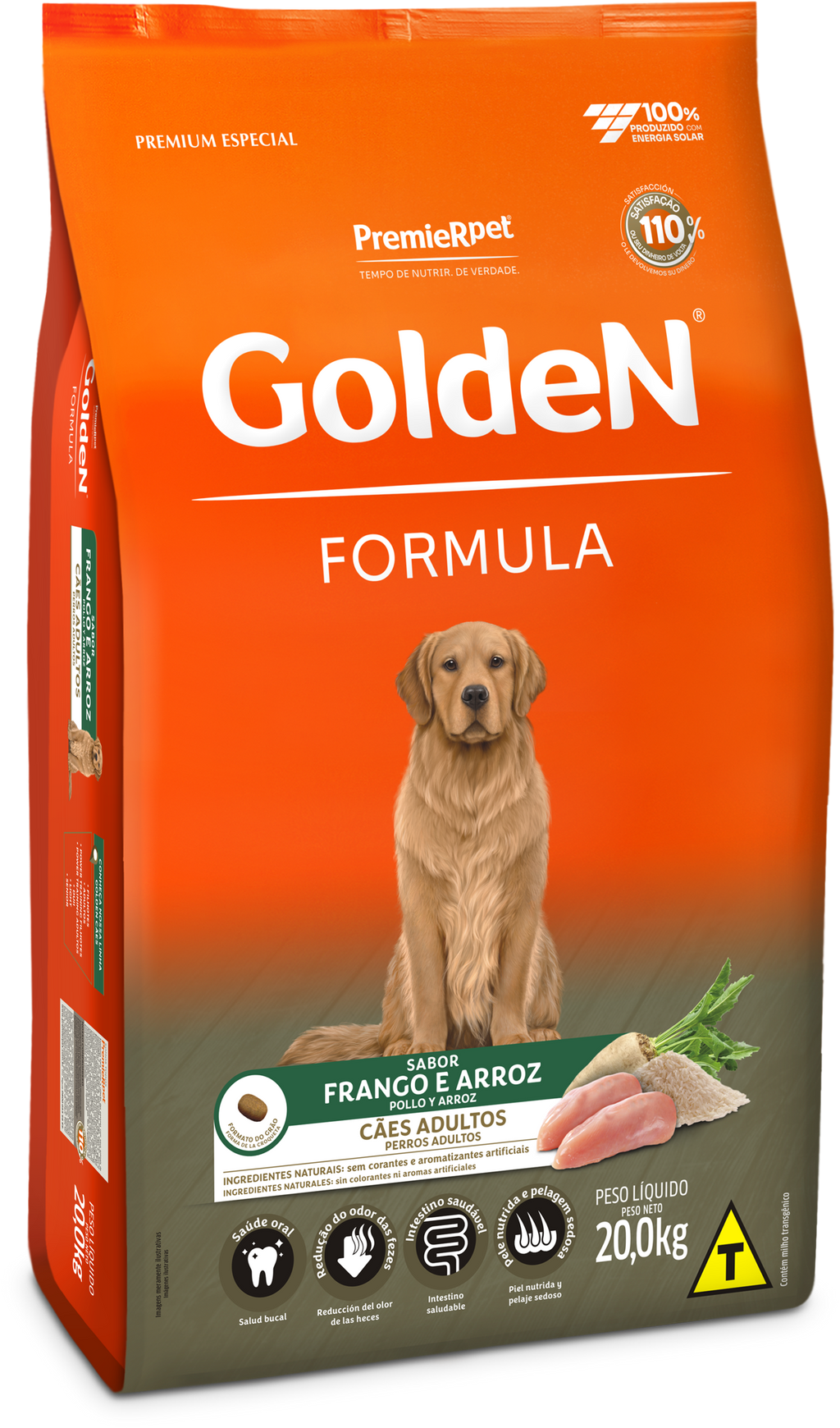 Harina de vísceras de pollo, maíz, arroz, afrecho de arroz, semillas de lino, pulpa de remolacha, grasa de cerdo, grasa de pollo, cloruro de potasio, cloruro de sodio, ácido propiónico, bentonita, antioxidantes (BHA, BHT), extracto de Yucca schidigera (0,04%), hexametafosfato de sodio (0,10%), hidrolizado de hígado de aves y cerdo, vitamina A, vitamina B1,