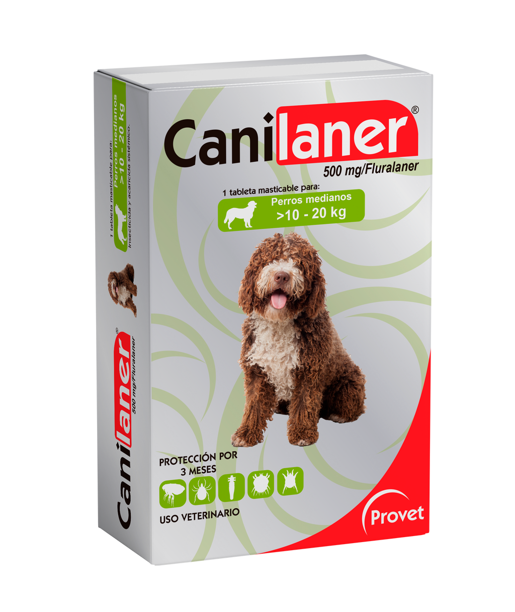 Canilaner es una tableta masticable saborizada, que contiene fluralaner micronizado. Esta indicado como insecticida y acaricida sistémico para el tratamiento y control de pulgas, garrapatas y ácaros de la sarna, con protección persistente por 12 semanas, tras una única administración.
