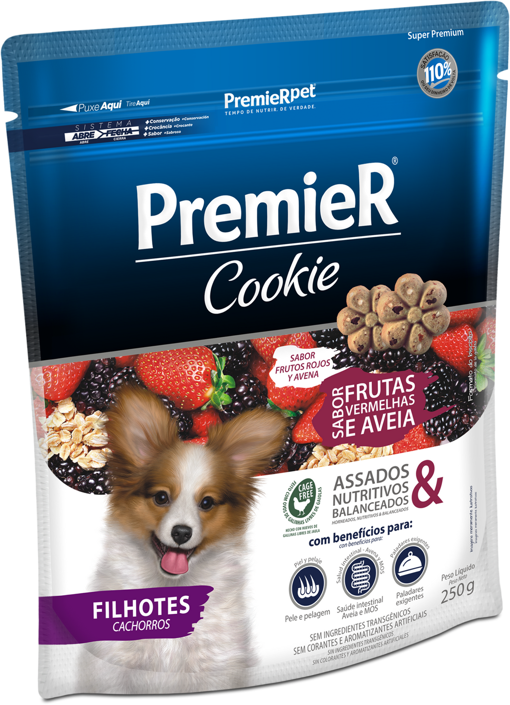 Harina de trigo, harina de chicharrón de cerdo, colágeno (hidrolizado), huevo en polvo, almidón de maíz, copos de avena (5%), harina de arroz, fibra de trigo, frutos rojos deshidratados (fresa y mora (1,0%)), arroz, grasa de cerdo, ácido cítrico, agar, antioxidantes (tocoferol y extracto de romero), biotina, carbonato de calcio, colorantes naturales (carmín de cochinilla, remolacha, clorofila y urucum), goma xantana, hidrolizado de hígado de cerdo, manano-oligosacáridos, quelato de aminoácido de zinc.