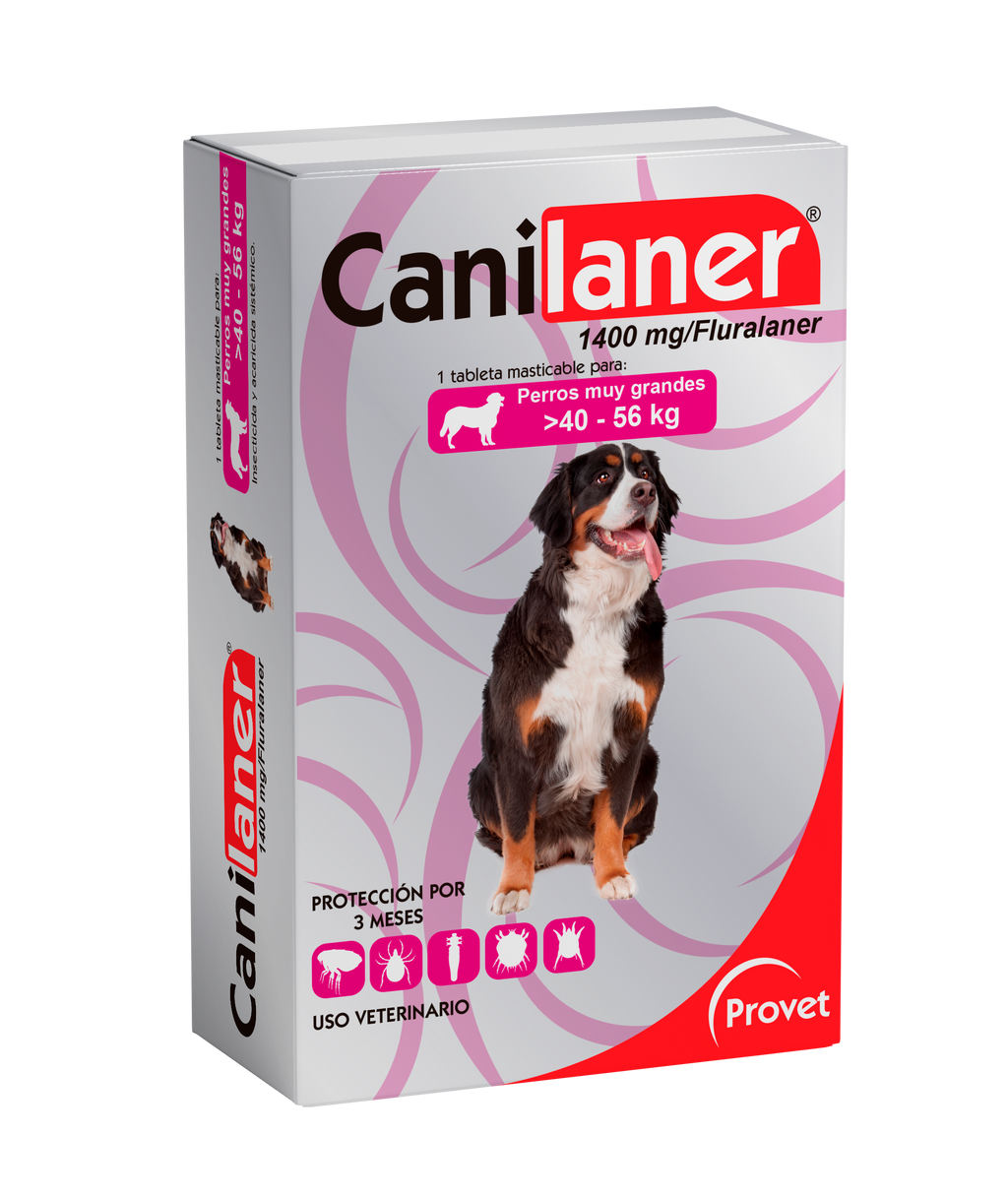 Canilaner es una tableta masticable saborizada, que contiene fluralaner micronizado. Esta indicado como insecticida y acaricida sistémico para el tratamiento y control de pulgas, garrapatas y ácaros de la sarna, con protección persistente por 12 semanas, tras una única administración.0